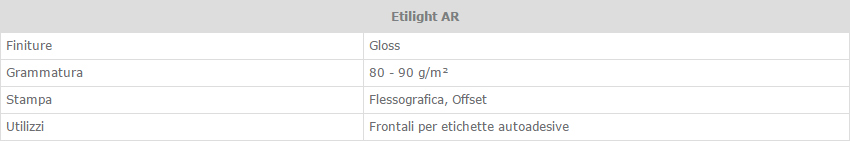 La Carta Monopatinata senza legno Etilight AR presenta un elevato grado di bianco e lucido, garantisce stampe di alta qualità ed è adatta alla produzione di etichette autoadesive.Caratteristiche