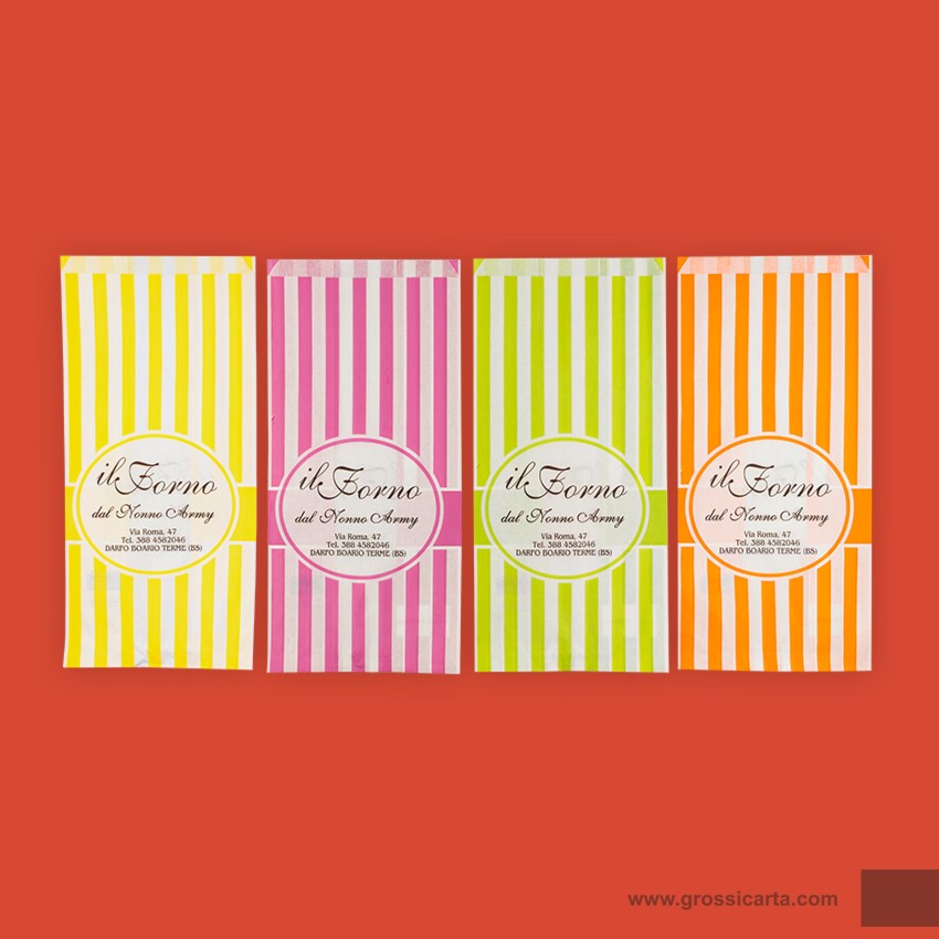 Sacchetti in carta - stampa fondo fantasia colori vari - spazio per personalizzazione