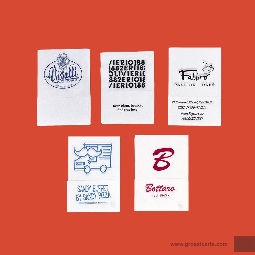 Tovaglioli di carta con stampa personalizzata.