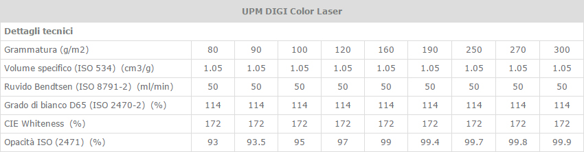 Grossi Carta Mantova S.p.A. commercializza e distribuisce delle cartiere UPM-Kymmene, la Carta per stampa UPM DIGI Color Laser appartenente alla tipologia di carte per stampa digitale UPM DIGI Laser.